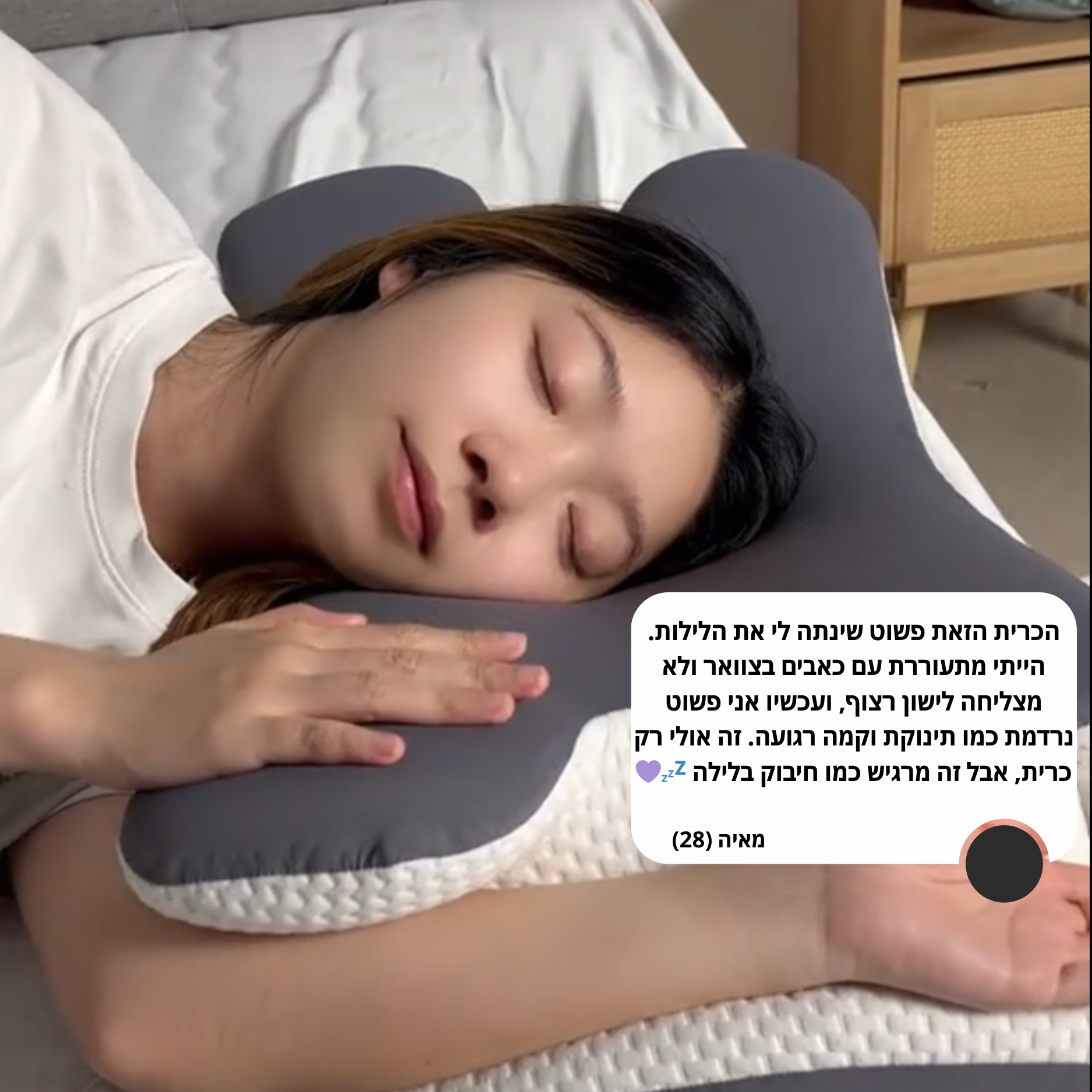 מהלקוחות שלנו סיפרו שהכרית הזו הייתה הפעם הראשונה שהם התעוררו בלי כאב – אחרי חודשים (או שנים) של סבל